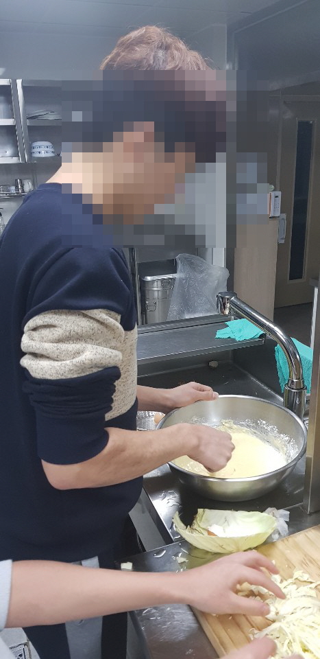 요리사가 꿈인 친구가 일일쉐프가 되어 직접 재료도 고르고 주도적으로 요리를 하였습니다. 낯선 소스인 우스타 소스때문에 처음에는 짜워서 먹을 수 없었지만 레시피를 찾고 다시 물을 넣고 비율을 조절하여 시행착오끝에 새로운 소스장을 만들어 뭇히 맛있게 음식을 먹을 수 있었습니다. 다함께 고민하고 알맞은 간이 되어가는 과정에서 한단계 성장한 아이들의 모습이 참 기특하였습니다.