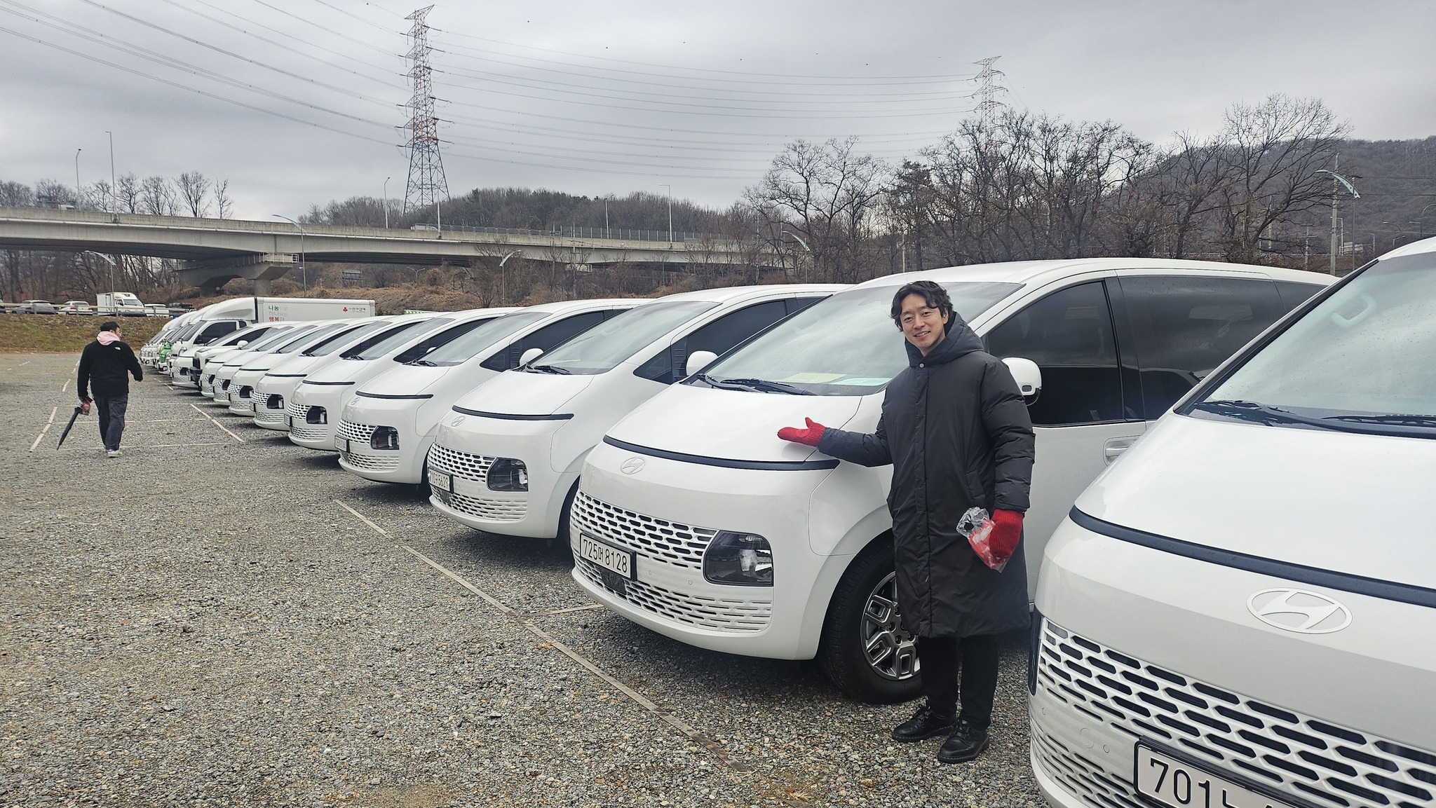 109대의 신형 차량들이 일정한 간격으로 도열되어 있는 모습이 장관이었습니다.