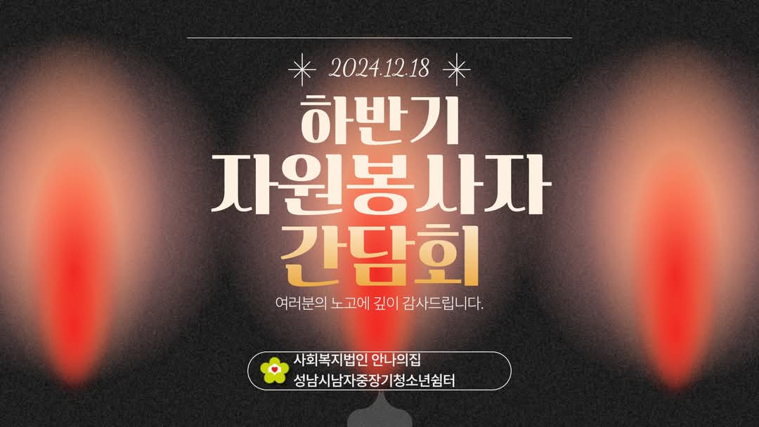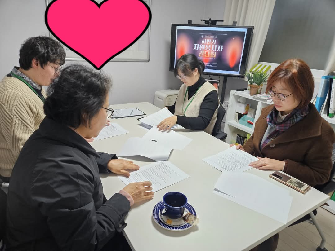 12월 18일 수요일 중장기쉼터에서는 자원봉사자 간담회가 진행되었습니다. 연말이라 봉사자님들의 개인 일정으로 많은 분들이 참석하지는 못하였지만 입소생들과 퇴소생들의 이야기를 나누며 즐거운 대화의 시간이었습니다. 하반기에도 아낌없이 마음을 다해 애쓰시는 봉사자님들께 감사드리며 희망이들이 손수 만든 조화 꽃나발을 전달하며 감사함을 전합니다. 다시한번 애써주시는 마음과 모습에 감사드립니다.
